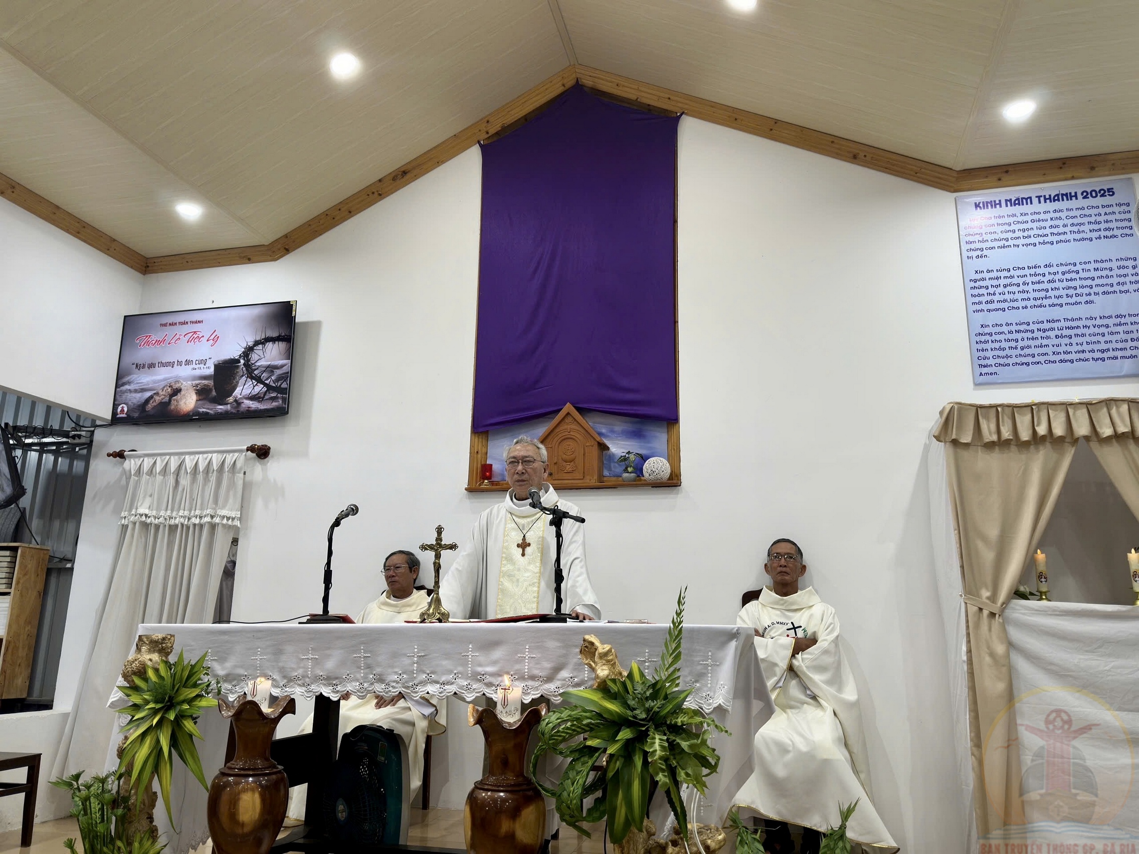 Hòa chung tâm tình cùng với Giáo hội Hoàn vũ bước vào Tam Nhật Vượt Qua của Chúa Giêsu, vào lúc 18g30 ngày 17.4.2025, Đức cha Emmanuel Nguyễn Hồng Sơn- Giám mục Giáo phận Bà Rịa đã đến Gx. Côn Sơn (tiền thân là Họ Côn Sơn thuộc Sao Mai- Huyện Côn Đảo) để cử hành Thánh lễ Tiệc ly khai mạc Tam Nhật Thánh 2025.