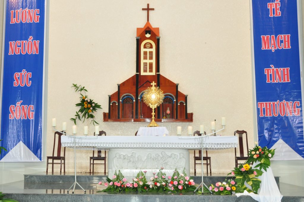 Sau Thánh lễ là nghi thức suy tôn Thánh Thể và các giờ chầu lượt của các giáo họ trong Giáo xứ.