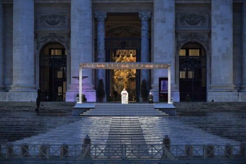 Tôi nhìn ngài, Đức Thánh Cha Phanxicô, đứng trên lễ đài giữa quảng trường thánh Phêrô, chỉ một mình ngài (và một linh mục phụ giúp ngài). Bầu không gian chung quanh vắng lặng. Ngài vẫn dõng dạc, giọng nói thân quen, đọc to và rõ bài huấn dụ của mình. Với trái tim người mục tử, ngài cố gắng mang đến cho người nghe sự an ủi qua việc phân tích lời mà Chúa Giêsu đã nói với các môn đệ khi họ đang ở giữa cơn cuồng phong: “Chính Thầy đây, đừng sợ!” Rồi giữa cái vắng lặng của thinh không ấy, dưới cơn mưa, ngài bước vào bên trong Đền Thờ. Những bước chân chậm rãi, nặng nề, khập khiễng! Bỗng thấy thương ngài quá đỗi, chỉ sợ ngài trượt ngã vì đường trơn. Không hề có tiếng vỗ tay như thường lệ. Chẳng thấy tiếng hô vang như mọi khi…