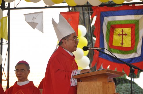 Hôm nay, các giám mục là những đấng kế vị các Thánh Tông đồ, môn đệ của Chúa, nhân cuộc hội nghị thường niên, cùng với mọi thành phần Dân Chúa, quy tụ nơi linh địa Ba Giồng, thuộc Giáo phận Mỹ Tho, để làm cuộc hành hương trong Năm Thánh nhằm tôn vinh, tưởng niệm và tri ân các Thánh Tử đạo Việt Nam. Linh địa Ba Giồng này còn ghi dấu ấn của sự hiện diện Thánh giá Chúa ngay từ những năm 1663 – 1664; đồng thời cũng là phần đất thấm đẩm máu đào của 27 chứng nhân đức tin, cùng với vị chủ chăn đáng kính là Thánh Phêrô Nguyễn Văn Lựu, Cha sở Ba Giồng và Thánh Philipphê Phan Văn Minh, người đã được Đức cha Taberd đón nhận vào hàng ngủ chủng sinh, hướng tới chức thánh linh mục, ngay tại phần đất Ba Giồng nầy. Vì thế, trong cuộc hành hương Năm Thánh, linh địa Ba Giồng ngày hôm nay trở nên như tiêu biểu cho các Trung tâm hành hương kính các Thánh Tử đạo Việt Nam trong cả Nước. Chúng ta hãy tưởng nhớ lại cuộc hành trình của các thế hệ tổ tiên tiền bối đón nhận đức tin Công giáo, trở nên môn đệ của Chúa, hiên ngang đi vào con đường của mầu nhiệm thánh giá: “Ai muốn theo Thầy, phải từ bỏ chính mình, vác thánh giá mình mà theo” (Mc. 8, 34), để trở nên: “Chính các con là ánh sáng cho trần gian” (Mt. 5,14). Vì thế, Thánh giá là dấu chỉ người môn đệ của Chúa Giêsu và đường thánh giá chính là con đường Chúa đã mở ra cho người môn đệ.
