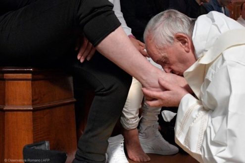 Lần đầu tiên trong triều đại giáo hoàng, thứ Năm Tuần Thánh năm 2013, Đức Phanxicô đã rửa chân cho các tù nhân, và là các tù nhân vị thành niên. Ngài nhắc nhở họ hãy luôn làm theo những gì Thiên Chúa đã dạy chúng ta, ngay cả khi điều đó có thể khó khăn và chúng ta có thể không hiểu.