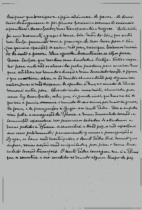Vào năm 1917 không ai đã có thể tưởng tượng được hết chuyện này: ba em bé chăn cừu (pastorinhos) ở làng Fatima mục kích, lắng nghe và ghi nhớ, và Lucia, nhân chứng duy nhất đang còn sống, đã viết hết chúng xuống giấy khi được lệnh của Ðức Giám-mục địa phận Leiria và được phép của Ðức Mẹ mà viết lại.