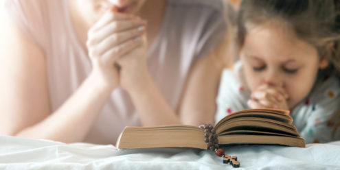 “Từ Mầu nhiệm hôn ước lớn lao, phát sinh trách nhiệm cốt yếu của các cha mẹ đối với con cái. Quả thật, sống trung thực tư cách cha mẹ chính là truyền đạt và làm chứng về ý nghĩa của đời sống trong Đức Kitô: qua lòng chung thủy của họ và sự hiệp nhất của đời sống gia đình, vợ chồng là những người đầu tiên công bố Lời Thiên Chúa cho con cái. Cộng đồng Giáo Hội phải nâng đỡ và giúp đỡ họ phát huy việc cầu nguyện trong gia đình, chăm chú lắng nghe Lời Thiên Chúa và hiểu biết Kinh Thánh. Nhằm mục đích này, Thượng Hội Đồng mong ước rằng mỗi một mái ấm gia đình phải có sách Kinh Thánh của mình, Sách phải được đặt ở nơi xứng hợp và được dùng để đọc và cầu nguyện. Các linh mục, các phó tế hay các tín hữu đã được chuẩn bị kỹ lưỡng có thể cung cấp mọi trợ giúp cần thiết. Thượng Hội Đồng cũng đã khuyến cáo là phải tạo lập những cộng đoàn gồm những gia đình, tại đó các tín hữu cùng nhau thực hành việc cầu nguyện và suy niệm chung những đoạn Kinh Thánh được chọn. Ngoài ra, vợ chồng phải nhắc nhở nhau rằng “Lời Thiên Chúa cũng là một sự nâng đỡ quí báu giữa các khó khăn của cuộc sống lứa đôi và gia đình” (Tông Huấn Verbum Domini (Lời Chúa) Của ĐGH Bênêđictô XVI – ngày 30-11-2010, phần e, Lời Chúa, hôn nhân và gia đình, số 85).