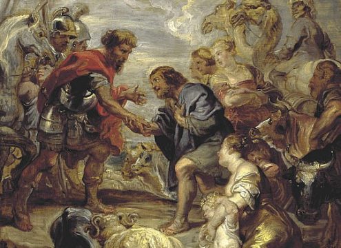 Sự bất hoà giữa hai anh em Esau và Jacob đã manh nha từ trong trứng nước, khi họ còn trong dạ mẹ. Việc này được tiếp nối ngay lúc họ chào đời. Những khác biệt trong tính cách của họ sau đó như càng nối dài thêm sự bất hoà, cho đến một ngày lên đến đỉnh điểm khi một kẻ ôm mối hận trong lòng, còn kẻ khác phải tìm cớ lánh nạn ở phương xa. Hơn hai mươi năm sau đó, họ đã gặp lại nhau, căng thẳng, kịch tính, tưởng chừng sẽ có một cuộc trả thù tàn bạo không thể tránh khỏi. Nhưng không, không những điều làm người ta lo sợ này đã không xảy ra, mà trái lại, Esau và Jacob đã có thể ôm hôn nhau, gọi nhau bằng tiếng huynh đệ chân tình. Làm sao lại có thể xảy ra cuộc hoà giải theo cách thế không thể tốt hơn được như vậy?