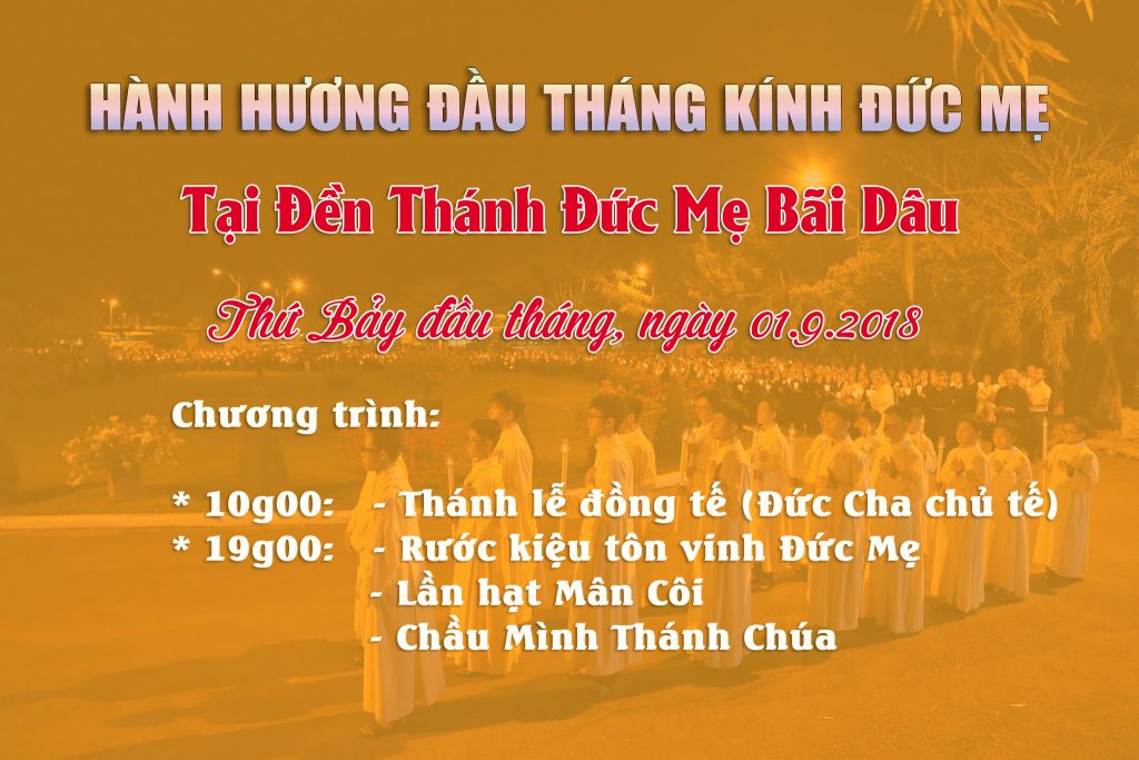 Chương trình ngày hành hương kính Đức Mẹ vào thứ Bảy đầu tháng, ngày 01.9.2018.