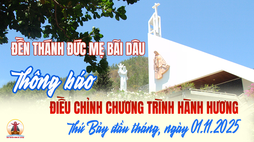 Thứ Bảy đầu tháng, ngày 01.11.2025, chương trình hành hương tại Đền Thánh Đức Mẹ Bãi Dâu có sự điều chỉnh như sau: