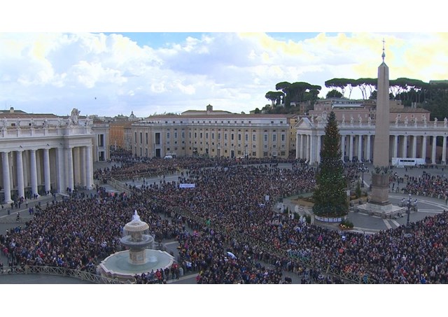 Lúc 12 giờ trưa ĐTC đã đọc Kinh Truyền Tin với tín hữu tụ tập tại quảng trường thánh Phêrô. Cũng như mọi năm, đoàn rước Ba Vua cỡi lạc đà, với nhiều ban nhạc đã khởi hành từ Lâu đài thiên thần cuối đại lộ Hòa Giải để tiến về quảng trường với các nhóm người thuộc nhiều thành phố khác nhau tham dự trong sắc phục thời Trung Cổ rất đẹp