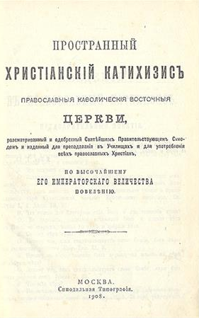 Hiện nay, Giáo hội Chính thống Nga vẫn sử dụng Sách Giáo lý được soạn bởi Thánh Filaret, Tổng giám mục Moskvavà Kolomna, xuất bản năm 1823. Ý tưởng về việc soạn thảo một bản giáo lý hiện đại của Giáo hội Chính thống Nga đã được đưa ra lần đầu tiên trong Đại hội các Giám mục vào năm 2008. Sau đó Thượng Hội đồng Giám mục của Giáo hội Nga đã giao cho Uỷ ban thần học của Thượng Hội đồng khởi sự công việc soạn thảo Sách Giáo lý cùng với các cơ quankhác của Thượng Hội đồng.