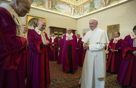 WHĐ (23.01.2016) – Ngày 22-01, tại Hội trường Clêmentinô, Vatican, Đức Thánh Cha Phanxicô đã tiếp Toà Thượng thẩm Rota trong buổi tiếp kiến thường niên, khai mạc năm tư pháp.