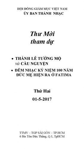 Thư mời tham dự Thánh lễ cầu cho các nhạc sĩ mới qua đời