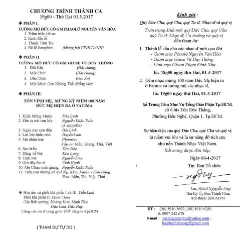 và Đêm nhạc mừng 100 năm Đức Mẹ hiện ra ở Fatima