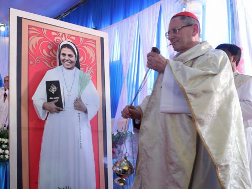 WHĐ (6.11.2017) – “Chân phước Rani Maria, cầu cho chúng con”, Đức hồng y Angelo Amato, Bộ trưởng Bộ Tuyên thánh, đã long trọng xướng lên lời cầu nguyện trên đây; và 15.000 tín hữu đã lặp lại lời cầu nguyện này khi tham dự Thánh lễ tuyên phong Chân phước cho nữ tu Rani Maria Vattalil, được cử hành hôm thứ Bảy 04-11-2017 vừa qua tại một trường trung học ở Indore, Ấn Độ.