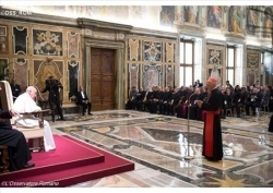 Tôi vui mừng được gặp Anh Chị Em khi Bộ Giáo lý Đức tin vừa kết thúc Khoá họp toàn thể. Tôi cảm ơn Đức hồng y Bộ trưởng đã giới thiệu tóm tắt những nét chính công việc Anh Chị Em đã làm trong hai năm qua.