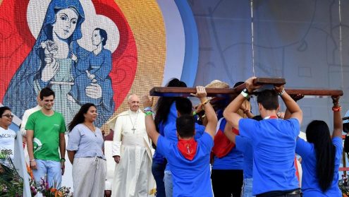 Trong lời chào mừng ĐTC, Đức TGM Ulloa sở tại cám ơn ĐTC đã chọn eo biển bé nhỏ này, nước Panama, làm nơi cử hành Ngày Quốc Tế giới trẻ năm nay, và mang lại cơ hội cho rất nhiều bạn trẻ Trung Mỹ, nhất là những người bị gạt ra ngoài lề xã hội vì nghèo đói, nhờ đó họ có thể trải qua kinh nghiệm gặp gỡ những người trẻ thế giới, và qua đó, họ khám phá mình cũng là những người nắm giữ vai chính trong việc canh tân Giáo Hội và xã hội”.