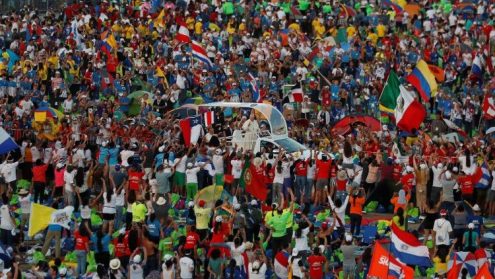 Khi đến đây, ĐTC đã dùng xe Papamobile để cùng với Đức TGM sở tại José Domingo Ulloa tiến qua các lối đi để chào thăm 600 ngàn bạn trẻ và các tín hữu địa phương trong bầu không khí rất tưng bừng và nồng nhiệt. Các bạn trẻ vẫy cờ quốc gia của họ và reo hò khi xe ĐTC đi qua. Trong khi đó ca đoàn và ban nhạc hùng hậu trình diễn các bài ca của những Ngày Quốc Tế giới trẻ từ trước đến nay, để nói lên sự liên kết giữa các biến cố quan trọng này, sau cùng là Bài Ca Ngày Quốc Tế giới trẻ lần này..