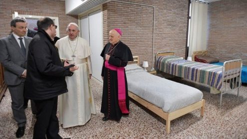 Khi đến Phi trường Fiumicino – Roma, trước khi lên máy bay, Đức Thánh Cha đã đến thăm khu vực giúp đỡ những người không có nhà cố định được sáng kiến bởi Sân bay Roma. Khu vực này là một phần của dự án “Sống quá cảnh, khuôn mặt con người của một sân bay”. Dự án này bắt đầu từ năm 2017, phối hợp giữa Sân bay Roma, Caritas Giáo phận Porto-Santa Rufina và Giáo xứ sân bay, cho phép người vô gia cư ở sân bay có cơ hội nhận được sự hỗ trợ .