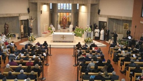 Cuộc viếng thăm của ĐTC kết thúc với thánh lễ đồng tế cùng với ĐHY Giám quản, Đức Cha phụ tá khu vực và hàng chục linh mục khác. Những người không có chỗ trong thánh đường, đã tham dự thánh lễ qua màn hình khổng lồ được bố trí trong khuôn viên giáo xứ.
