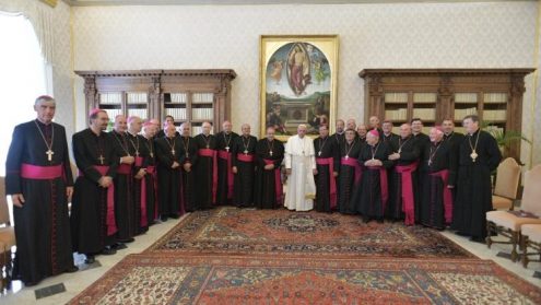 Trong cuộc gặp gỡ ĐTC đã bày tỏ lòng biết ơn và rất quí chuộng vị tiền nhiệm của ngài, Đức Biển Đức 16, như một “người can đảm đã đưa ra những biện pháp lớn trong Giáo Hội”.