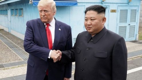 Trong cuộc gặp gỡ, sau khi bắt tay nhau, Tổng thống Trump đã bước qua lãnh thổ Bắc Hàn, trở thành Tổng Thống đầu tiên của Hoa kỳ đặt chân lên quốc gia này. Sau đó hai vị lãnh đạo đã trò chuyện với nhau trong một giờ đồng hồ tại tòa nhà được gọi là “Nhà Tự do”, nằm bên phần biên giới của Nam Hàn. Tổng Thống Nam Hàn Moon Jae-in cũng hiện diện trong một ít phút.