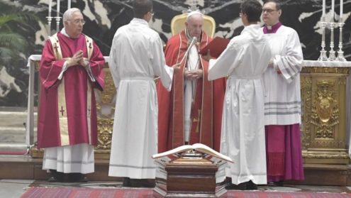 Sau thánh lễ, ĐTC Phanxicô đã làm nghi thức tiễn biệt ĐHY Paolô Sardi, cũng tại đền thờ thánh Phêrô. (REI 14/07/2019)