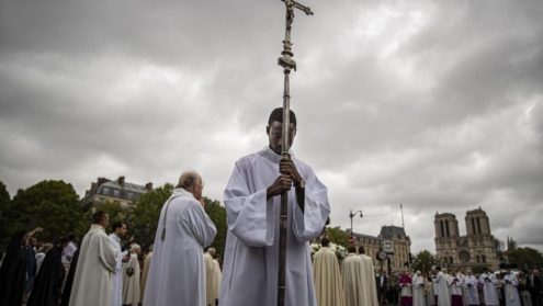 Từ 9 giờ 30 sáng ngày 15/8, tại Nhà thờ Đức Bà, hàng ngàn người dân Paris đã quy tụ xung quanh tượng Đức Trinh Nữ bằng bạc. Đây là bức tượng do vua Charles X dâng cho Nhà thờ chính tòa vào năm 1830, là một trong những báu vật của Nhà thờ Đức Bà đã được sơ tán trong vụ hỏa hoạn ngày 15 tháng Tư vừa qua. Đây là buổi rước kiệu truyền thống như mọi năm nhân dịp lễ Đức Maria Hồn Xác Lên Trời, nhưng năm nay mọi người tham dự đều có một cảm xúc đặc biệt sau biến cố Nhà thờ bị cháy.