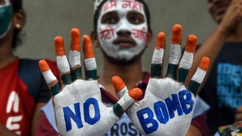 Vào tháng 11 năm 2014, ĐTC đã nói: “Loài người chưa học được gì từ Hiroshima hay Nagasaki”. Chính ĐTC cũng đã đưa ra lời tố cáo mạnh mẽ lên án việc sở hữu vũ khí hạt nhân. Tháng giêng năm 2018, ngài đã cho phân phát tấm thiệp trên đó có hình một bé trai đang cõng em đã chết trên lưng, xếp hàng đợi hỏa táng. Tấm hình được chụp sau vụ ném bom nguyên tử vào Nagasaki.