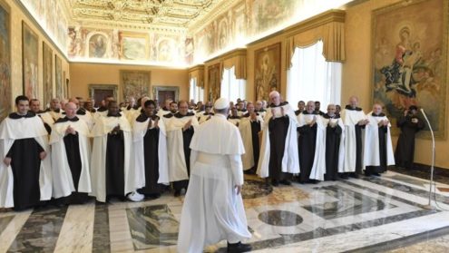 Sáng thứ bảy ngày 21 tháng 9, ĐTC đã tiếp các tu sĩ Dòng Cát Minh, nhân dịp Dòng tổ chức Tổng công hội. Trong bài huấn dụ, ĐTC nhấn mạnh ba điều quan trọng mà các tu sĩ cần chú ý trong hành trình theo Chúa: trung thành và chiêm niệm; đồng hành và cầu nguyện; dịu dàng và lòng trắc ẩn.