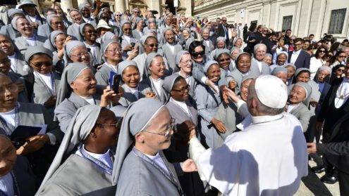 Sáng thứ tư 25/9 đã có hơn 20 ngàn tín hữu quy tụ tại quảng trường thánh Phêrô để tham dự buổi tiếp kiến chung của ĐTC. Trong số các tín hữu, có một số tu sĩ của các dòng đang tham dự tổng tu nghị tại Roma, đặc biệt là 80 nữ tu dòng Saint Paul de Chartres, trong đó cũng có một số chị Việt Nam.