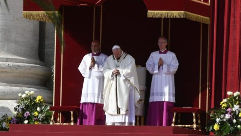 Sau khi đọc Kinh Truyền Tin, ĐTC chào các Hồng y và sau đó ngài lên xe mui trần đi vòng quang quảng trường chào các tín hữu.