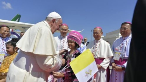 Máy bay của hãng Alitalia chở Đức Thánh Cha Phanxicô đã đáp xuống sân bay quân sự Bangkok lúc 12:02am giờ Thái Lan, cùng múi giờ với Việt Nam, sau 11 giờ bay trực tiếp từ sân bay Fiumicino của Roma.
