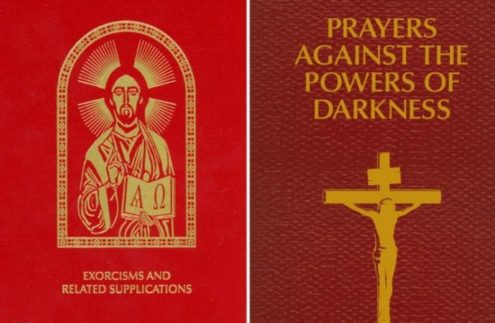 Ảnh bìa của hai ấn phẩm liên quan đến trừ quỷ của Hội đồng Giám mục Hoa Kỳ được nhìn thấy trong bức ảnh tổng hợp này. “Trừ quỷ và những bổ sung liên quan” là bản dịch tiếng Anh chính thức đầu tiên về nghi thức trừ quỷ và chỉ dành cho các giám mục và những người được các giám mục chỉ định. Cuốn sách nhỏ “Cầu nguyện chống lại quyền lực bóng tối” chứa những lời cầu nguyện cụ thể từ phụ lục của bản dịch và đang được cung cấp cho bất cứ ai. (CNS.)