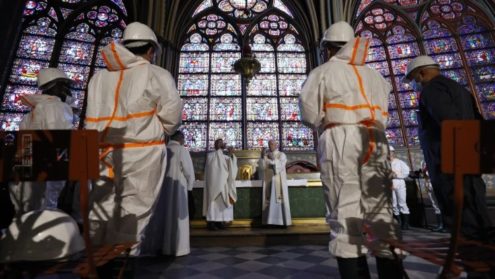 Đây là Thánh lễ đầu tiên được Đức Tổng Giám mục Aupetit chủ sự sau vụ hỏa hoạn. Việc cử hành có ý nghĩa vì đây là ngày kỷ niệm Cung hiến Nhà thờ. Đức Tổng Giám mục nói: “Chúng ta vui, vì giờ đây nhà thờ của chúng ta đã được củng cố. Hiện chúng ta đang bước vào giai đoạn trùng tu. Nhà thờ sẽ đẹp hơn bao giờ hết và điều này mang lại cho chúng ta niềm vui và hy vọng trong tâm hồn”.