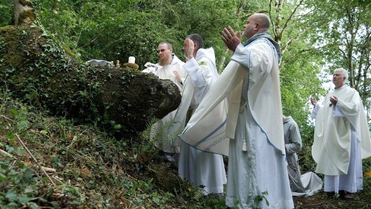 Cha Bill Shaughnessy và cha Derek Leonard dâng Lễ tại một tảng đá Lễ ở Dublin Mountains