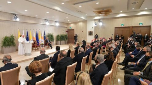 Với thực tế không dễ dàng, Đức Thánh Cha khuyến khích: “Những thời điểm có vẻ không thuận lợi, khi đối thoại trì trệ, cũng có thể chính là những thời điểm chuẩn bị cho hòa bình. Viên ngọc trai vẫn nhắc nhở chúng ta về điều này, vì nó thành hình được như vậy là nhờ tiến trình kiên nhẫn âm thầm kết thêm chất mới bằng những tác nhân đã làm nó bị thương. Trong những tình huống này, hận thù không được phép lấn át, đừng từ bỏ việc hàn gắn vết thương, đừng quên những hoàn cảnh của những người biến mất. Và khi cảm giác nản lòng xuất hiện, hãy nghĩ đến các thế hệ tương lai, những người mong muốn được thừa hưởng một thế giới hòa bình, hợp tác, gắn kết, không phải là nơi sinh sống của những kẻ thù truyền kiếp và bị ô nhiễm bởi những tranh chấp chưa được giải quyết. Vì thế đối thoại là điều cần thiết, để tránh sự gia tăng nghi ngờ và oán hận. Chúng ta hãy đề cập đến Địa Trung Hải, bây giờ không may là một nơi của xung đột và thảm kịch nhân đạo; trong vẻ đẹp sâu xa của nó, nó là mare nostrum, là biển của tất cả các dân tộc gắn liền với nó, để được kết nối, không bị chia cắt. Sýp, ngã tư địa lý, lịch sử, văn hóa và tôn giáo, là vị trí để thực hiện một hành động hòa bình. Ước mong Sýp trở thành một công trường mở cho hòa bình ở Địa Trung Hải.”