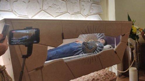 Từ ngày 19/10/2020, tấm kiếng trước mộ của Chân phước Acutis được che lại nhưng các tín hữu vẫn tiếp tục kính viếng và cầu nguyện với Chân phước. (CNA 02/06/2022).