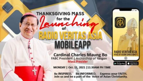 Đài Chân Lý Á Châu (08.10.2021) – Thứ Hai, ngày 11 tháng Mười năm 2021, Đức Hồng y Charles Maung Bo, SDB, Tổng giám mục Tổng giáo phận Yangon, Myanmar, Chủ tịch Liên Hội đồng Giám mục Á Châu (FABC) sẽ khai trương Ứng dụng điện thoại di động mới cho Đài Chân Lý Á Châu (Radio Veritas Asia-RVA). Sự kiện này được đánh dấu với thánh lễ kính nhớ thánh Gioan XXIII, vị Giáo hoàng truyền cảm hứng cho sự ra đời của Đài Chân Lý Á Châu, diễn ra tại Nhà thờ Chính tòa Đức Maria của Tổng giáo phận Yangon. Thánh lễ được phát trực tuyến để mọi người khắp nơi có thể tham dự. Sau thánh lễ, Đức Hồng y Bo sẽ có bài phát biểu cho sự kiện đáng nhớ này.