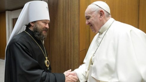 Vatican News (22.12.2021) – Sáng thứ Tư 22/12/2021, tại phòng họp ở đại thính đường Phaolô VI, Đức Thánh Cha đã tiếp Đức cha Hilarion Alfeyev, Tổng Giám mục Chính Thống giáo của Volokolamsk. Hai vị đã tái khẳng định “tinh thần huynh đệ” và cam kết chung “tìm kiếm câu trả lời cụ thể cho những vấn đề về con người và tâm linh”.