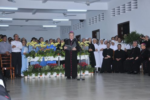 Chúng con cũng cảm thấy rất ấm lòng khi Đức Tổng về tham dự kỳ họp thường niên này với Hội đồng Giám mục Việt Nam. Sự hiện diện của Đức Tổng là một bằng chứng cho mối dây hiệp thông hữu hình giữa Toà Thánh và Giáo hội Việt Nam, là tín hiệu báo trước một cuộc đồng hành tận tình của Đức Tổng với Hội đồng Giám mục Việt Nam. Chúng con cầu chúc Đức Tổng thành công trong sứ vụ tại Đông nam á, cách riêng là tại Việt Nam.
