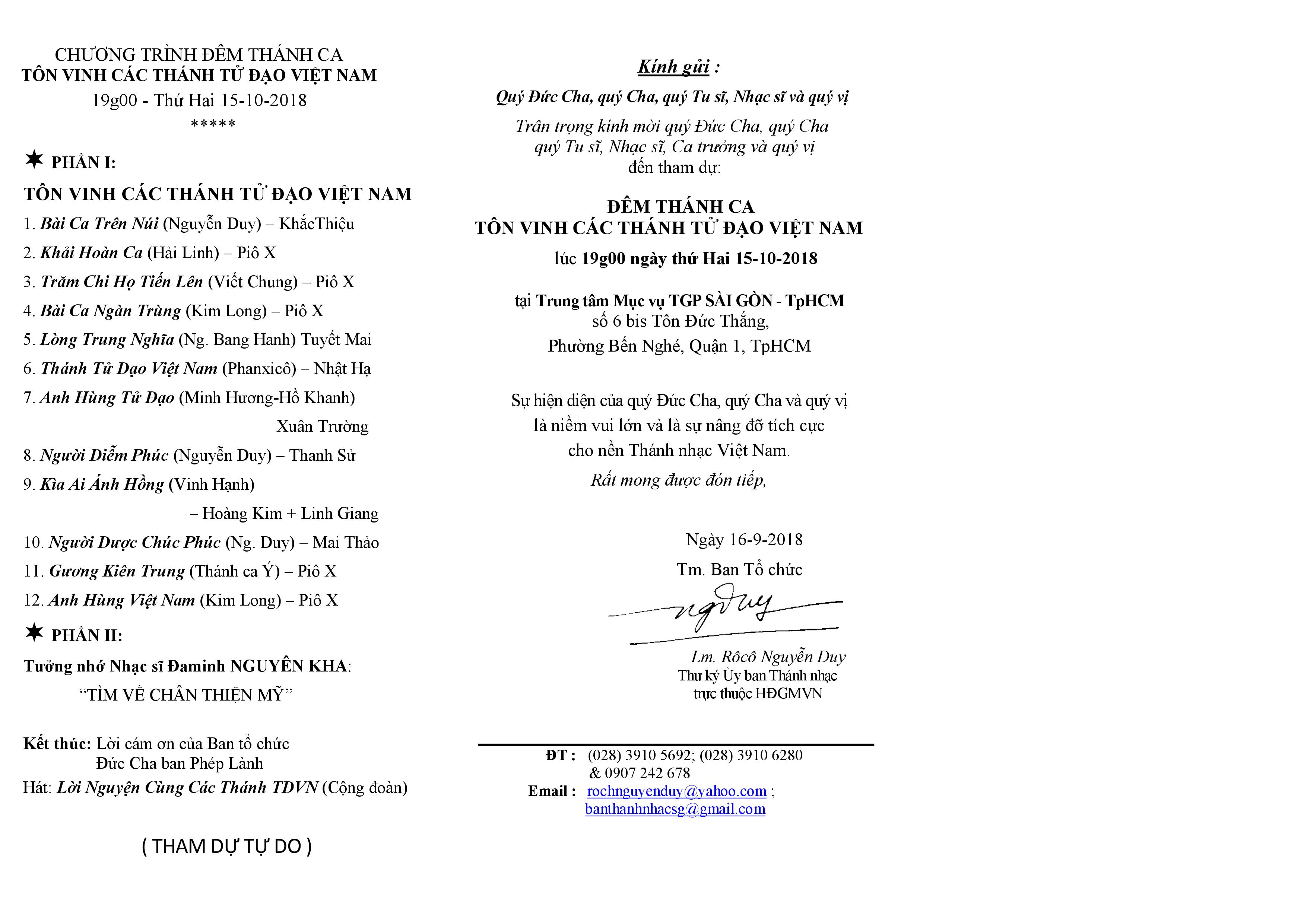 đêm thánh ca tôn vinh các thánh Tử Đạo Việt Nam