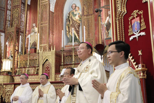 Cùng đồng tế trong Thánh lễ dưới sự chủ tế của Đức TGM Giuse còn có Linh mục đoàn TGP Hà Nội, các linh mục Giáo phận Hải Phòng, quý chủng sinh, quý nam nữ tu sĩ và đông đảo mọi thành phần cộng đoàn dân Chúa.
