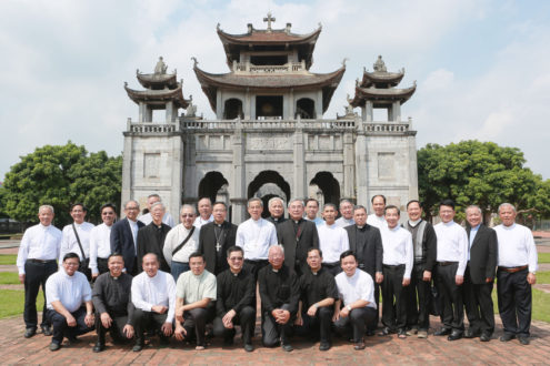 Sau buổi gặp gỡ, Đức Tân Tổng Giám mục cùng phái đoàn và các linh mục GP Phát Diệm đã chụp hình lưu niệm tại Phương Đình Phát Diệm.