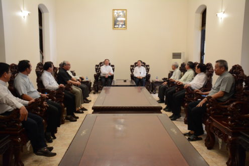Trước khi dùng cơm trưa và ra về, Đức cha Giuse đưa phái đoàn đến thăm nhà nguyện cổ của Tòa TGM Sài Gòn – TPHCM.