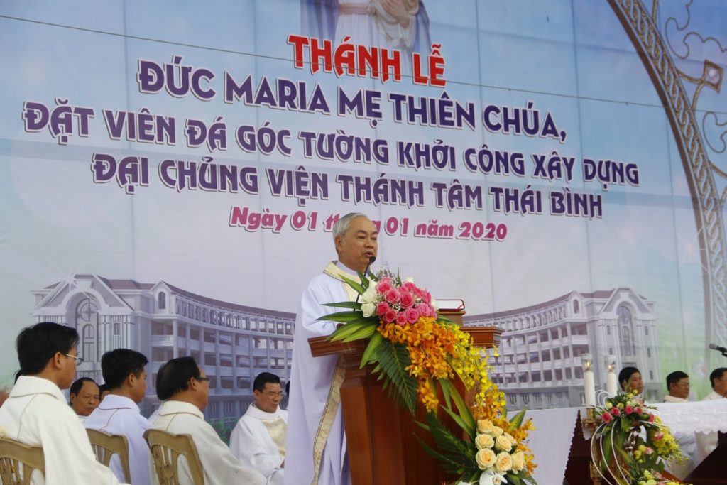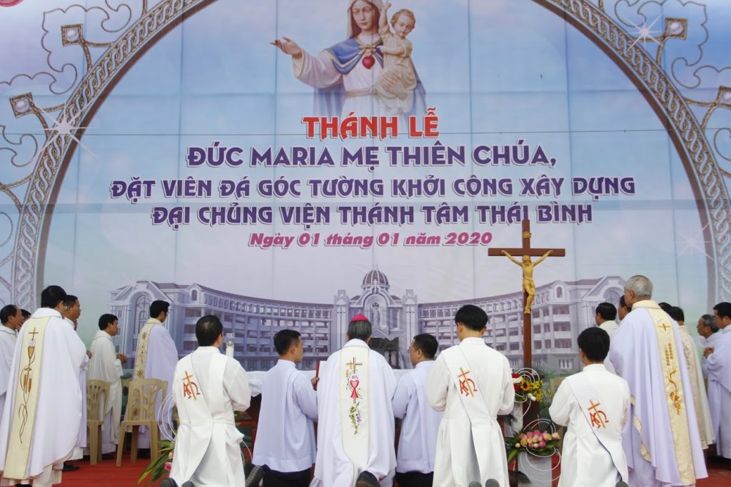Sáng thứ Tư – 1/1/2020, Đức Cha Phêrô Nguyễn Văn Đệ – Chủ chăn Giáo phận Thái Bình đã chủ tế thánh lễ kính Đức Maria Mẹ Thiên Chúa, trong Thánh lễ Đức cha đã chủ sự nghi thức làm phép và đặt viên đá góc xây dựng Chủng viện Thánh Tâm Thái Bình. Cùng hiệp dâng thánh lễ với đức cha có cha Tổng đại diện, quý cha trong giáo phận, quý thầy phó tế, quý tu sĩ, quý thầy chủng sinh, tu sinh và mọi thành phần dân Chúa trong Giáo phận.