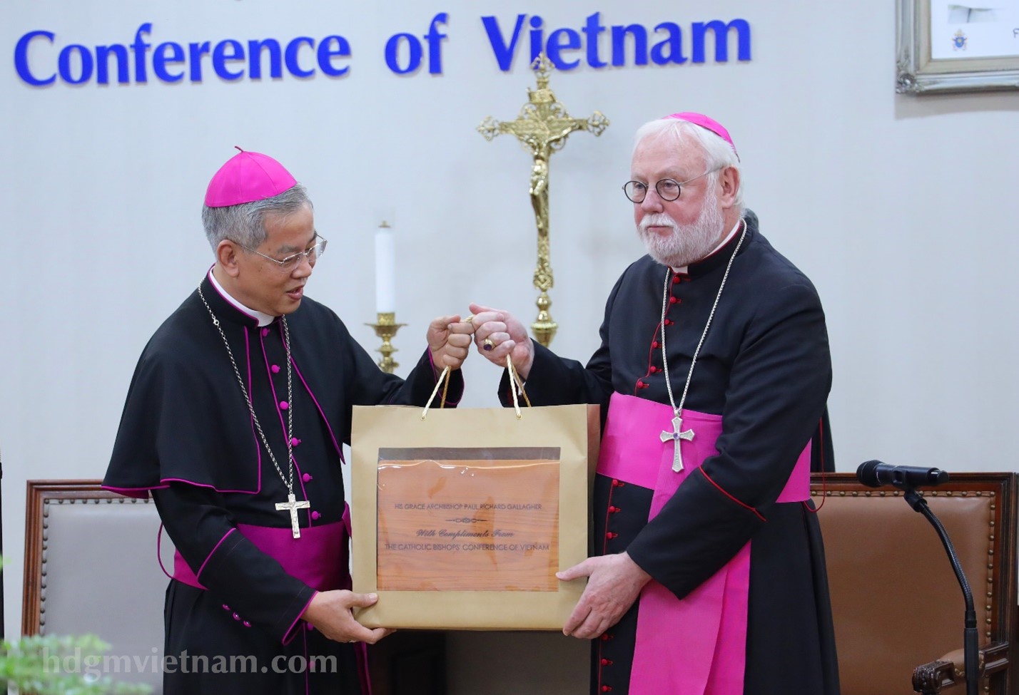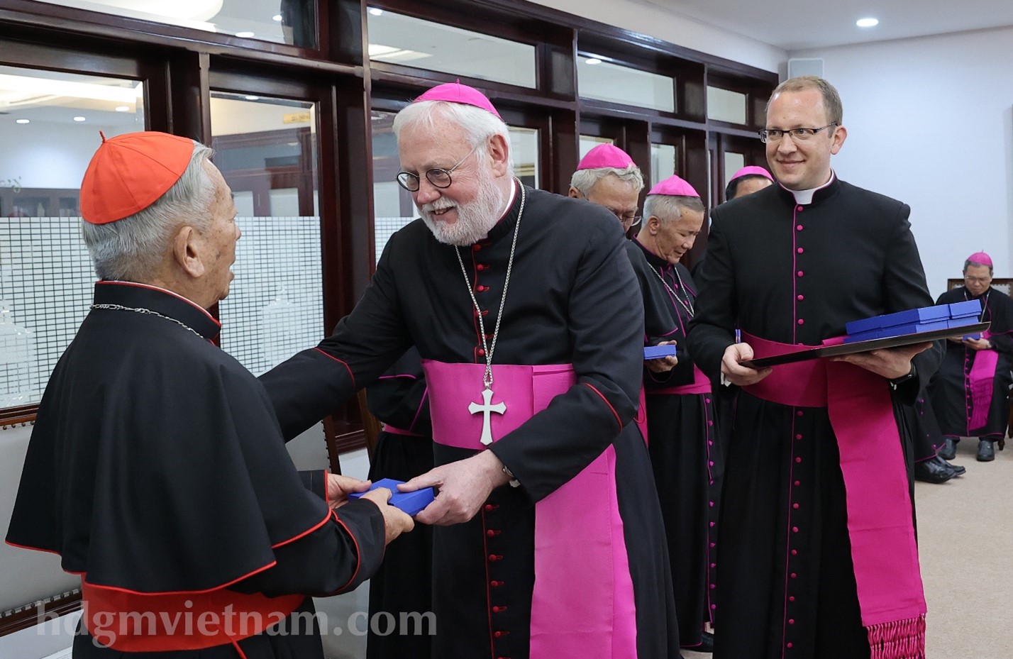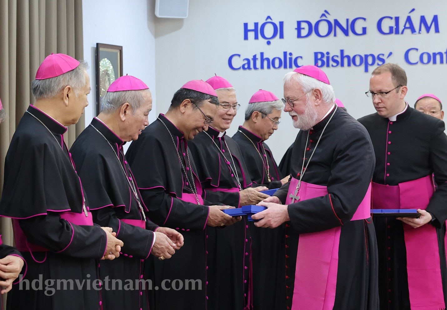 Sau đó, Đức TGM Paul Richard Gallagher cũng đã gửi quà tặng từng Giám mục trong HĐGMVN.