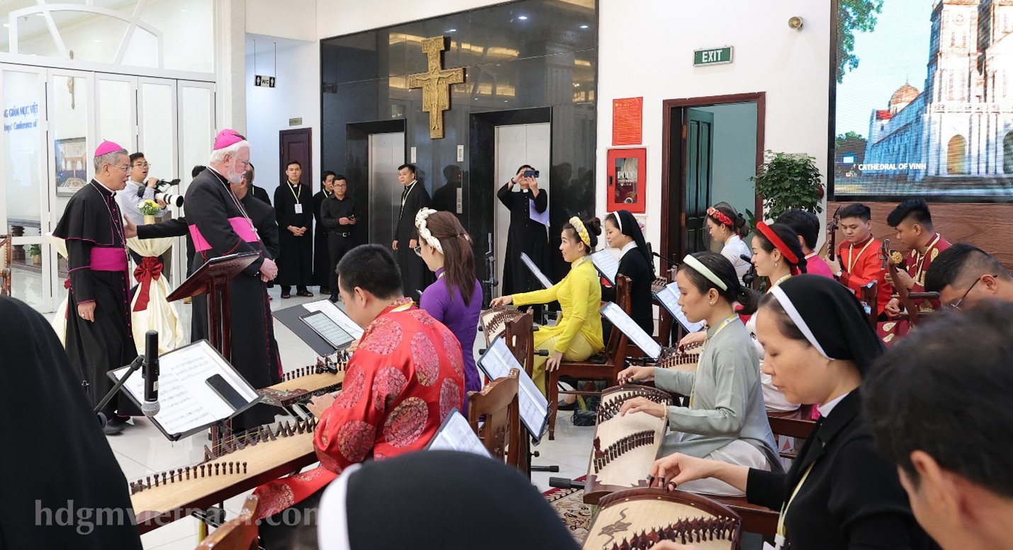 Dàn nhạc dân tộc – do linh mục Giuse Phạm Sỹ Tùng quy tụ các nhạc công từ một số dòng tu và ca đoàn – đã biểu diễn 10 nhạc phẩm hân hoan chào mừng phái đoàn ngoại giao Tòa Thánh cùng các Giám mục trong HĐGMVN.