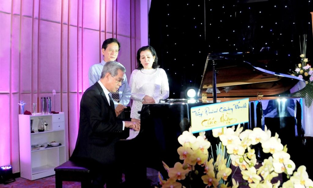 Tiếp nối, nhiều DNCG đã ủng hộ… Cây đàn piano Kawai do ông bà Nguyễn Thái trao tặng quỹ là tặng phẩm duy nhất đấu giá. Ông bà Thuận – Thành đã trở thành chủ sở hữu. Cây đàn này đặc biệt ở chỗ được chính Đức TGM Giuse lưu chữ ký trên đàn và trực tiếp đệm bài hát “Kinh hòa bình” cho mọi người cùng hát.