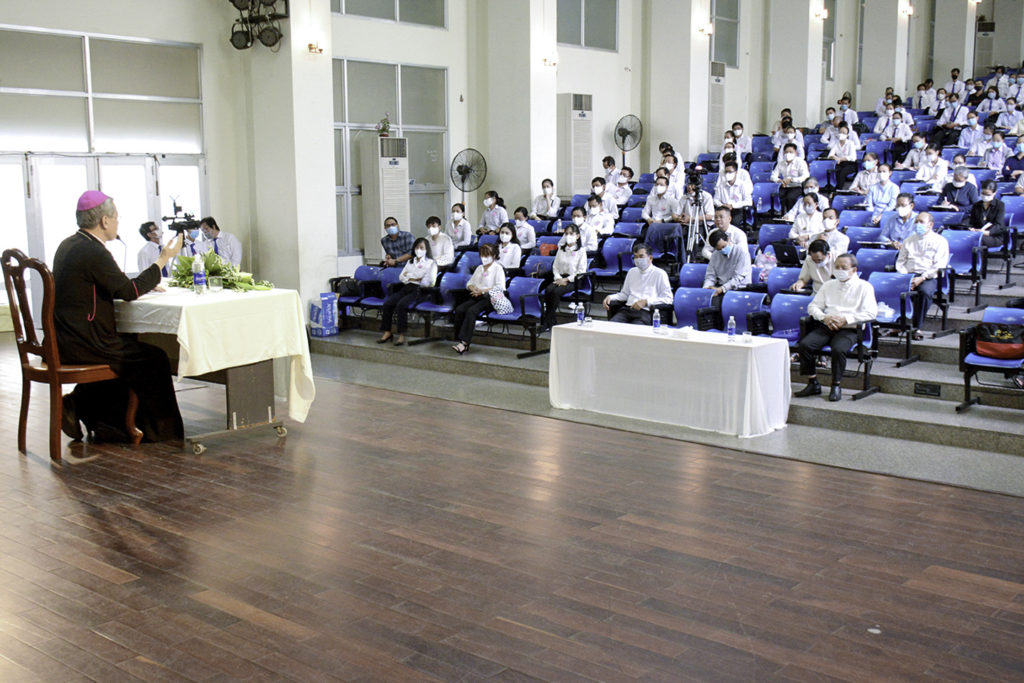 Kết thúc bài chia sẻ, Đức TGM Giuse đã chủ sự nghi thức “Tuyên hứa và Nhận Chứng chỉ của các học viên” của lớp Mục vụ Truyền Thông Tổng Quan niên khóa 2020-2021.