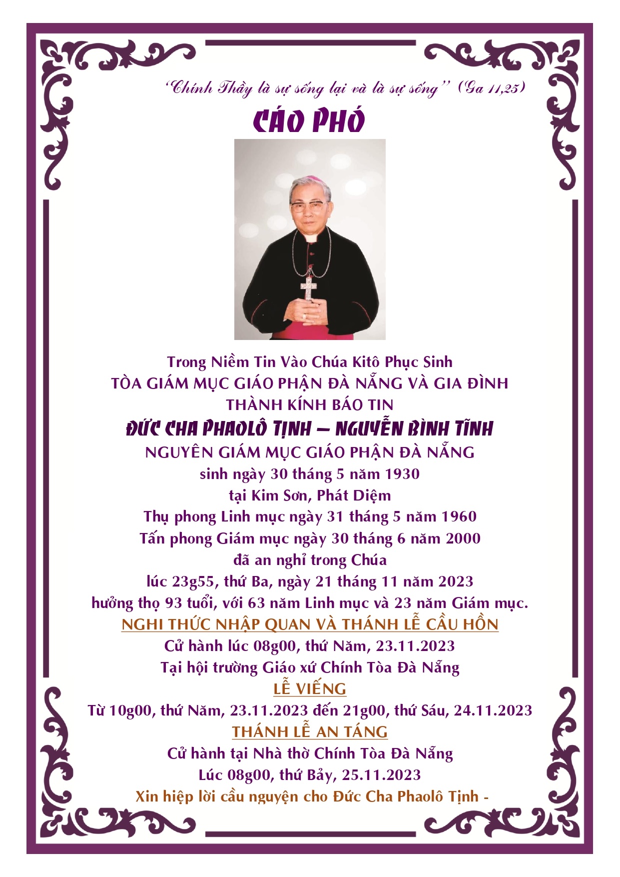 CÁO PHÓ ĐỨC CHA PHAOLÔ TỊNH NGUYỄN BÌNH TĨNH