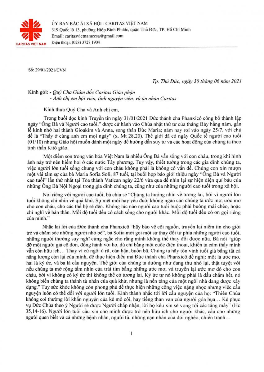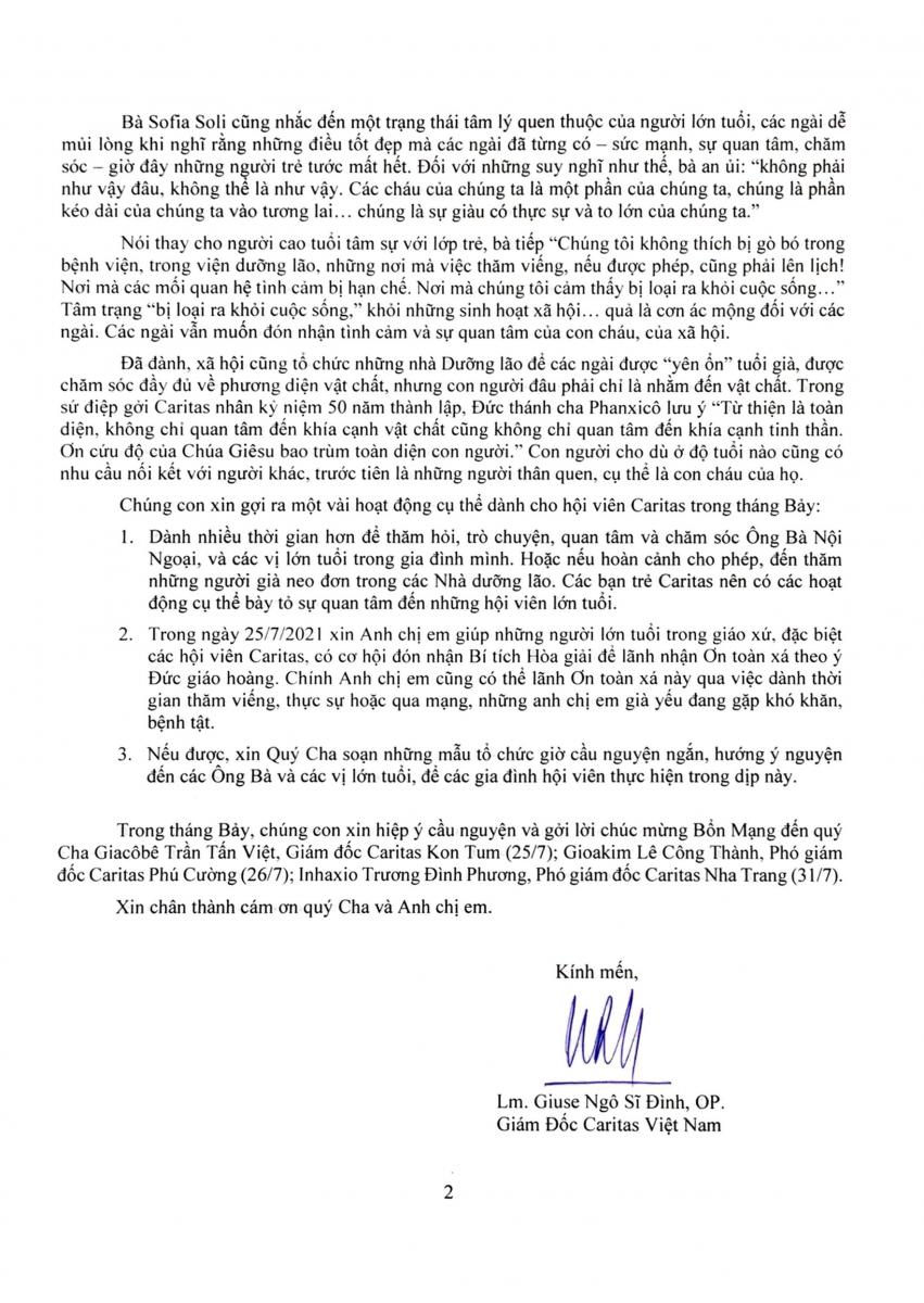 THƯ CARITAS – THÁNG 7/2021: CHĂM SÓC ÔNG BÀ VÀ NGƯỜI CAO TUỔI