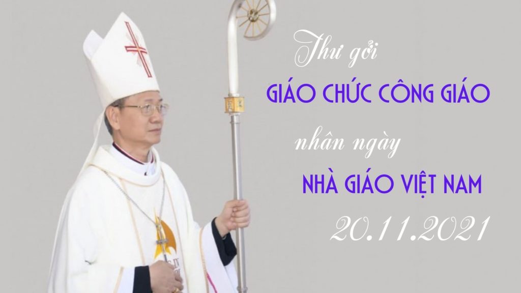 Thay mặt cho Ủy Ban Giáo Dục Công Giáo trực thuộc Hội Đồng Giám Mục Việt Nam, tôi ân cần gửi lời kính chúc đến tất cả quý thầy cô trên mọi miền đất nước một ngày Nhà Giáo Việt Nam 2021 vui tươi và hạnh phúc trong sứ mạng giáo dục của mình. Dù phải đối diện với nhiều khó khăn của cuộc sống giáo chức, qua cách dạy và học online của thời điểm dịch bệnh Covid-19 này, nhưng hy vọng các thầy cô giáo vẫn giữ ngọn lửa nhiệt tình trong việc giáo dục toàn diện cả xác lẫn hồn. Tôi cũng kính chúc quý thầy cô đã hưu trí an bình và mạnh khỏe.